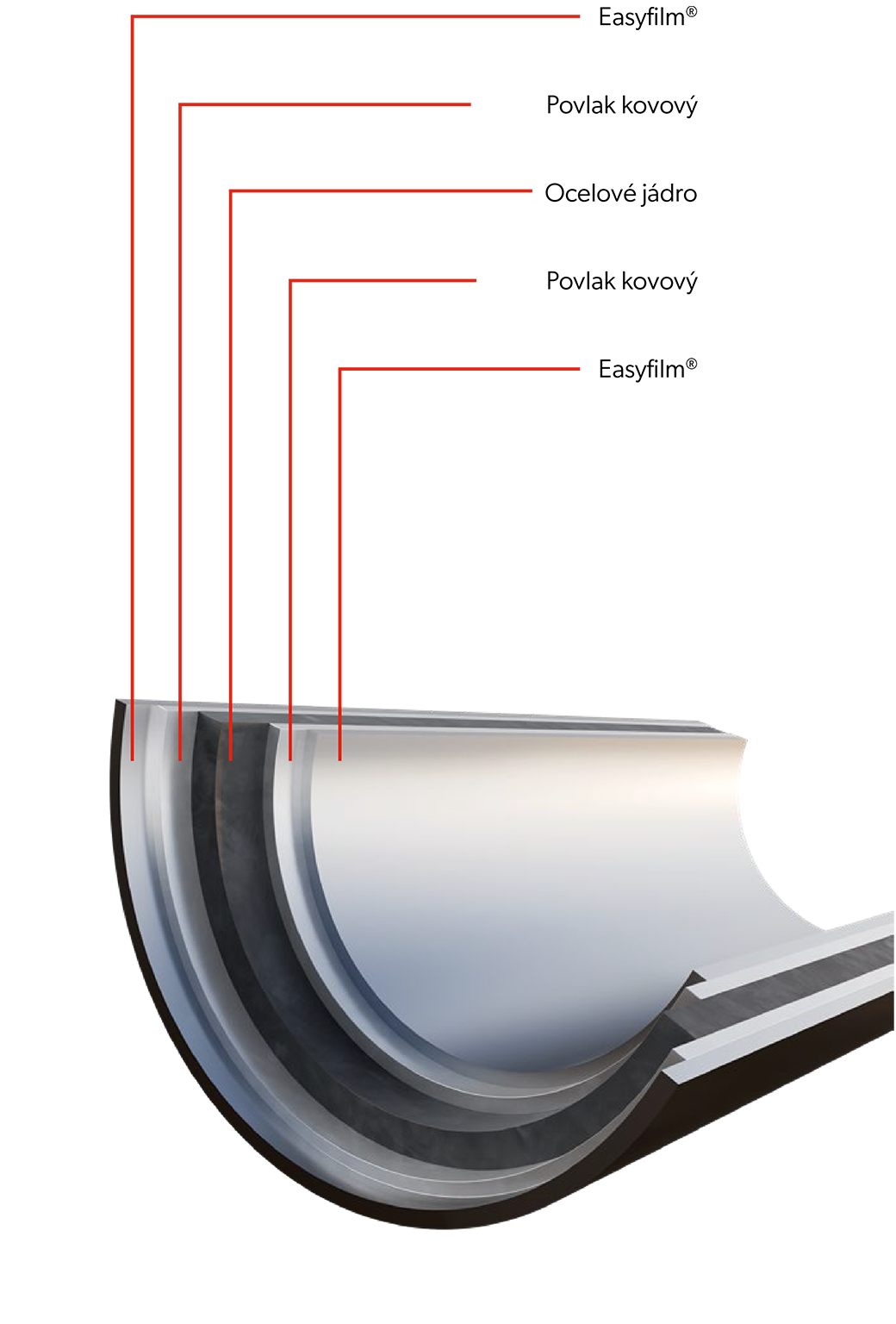 Je to ocelový plech oboustranně potažený slitinou hliníku a zinku v procesu blízkém žárovému zinkování. Díky tomu splňuje nejpřísnější požadavky na odolnost plechů proti atmosférické korozi a korozi ve vlhkém prostředí. Navíc má ochranný polymerový povlak Easyfilm, který chrání rovněž ocelové hrany v svitcích a zvyšuje estetiku povrchu.