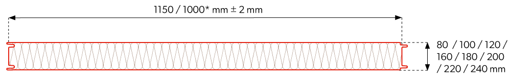| Tloušťka PIR panelu [mm] | 80 | 100 | 120 | 160 | 180 | 200 | 220 | 240 |