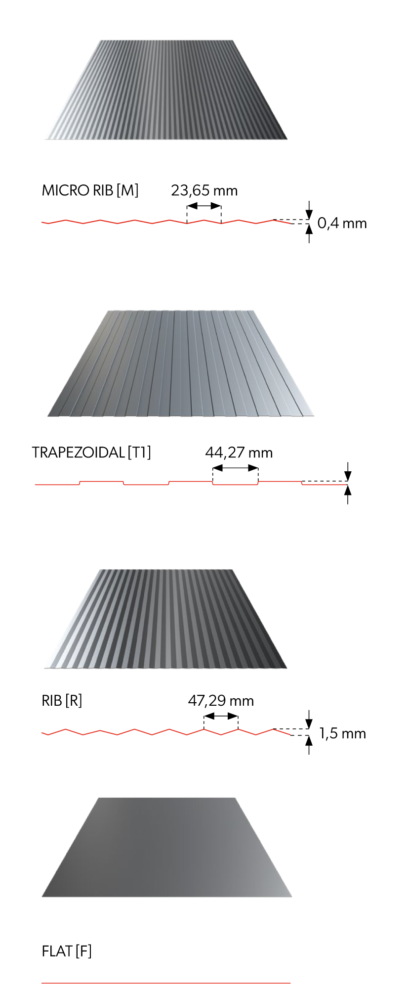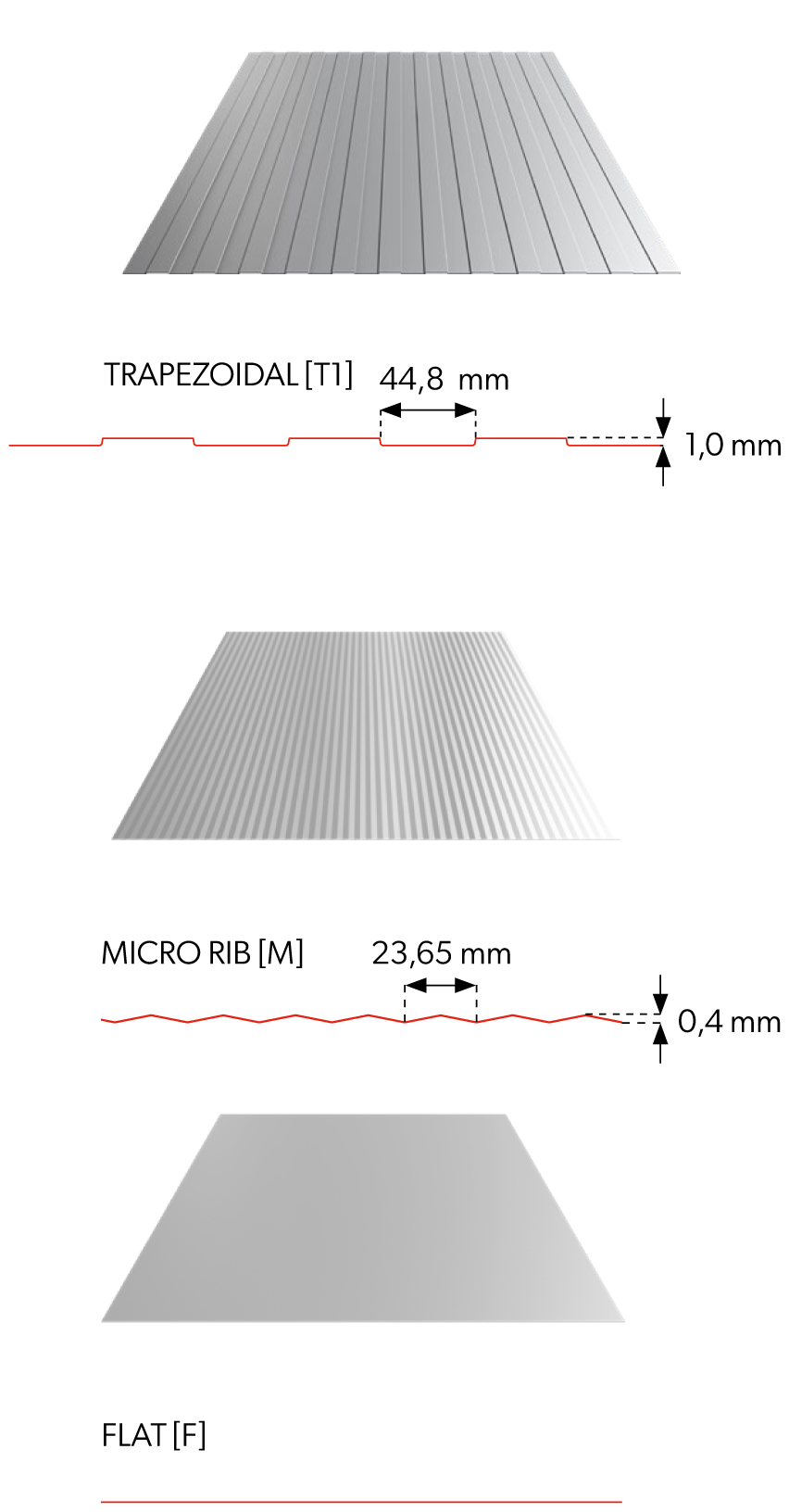 Poliester Interior [INT], Poliester Standard [RAL], HERCULIT [HC], MULTILAYER 40 [MLT] |