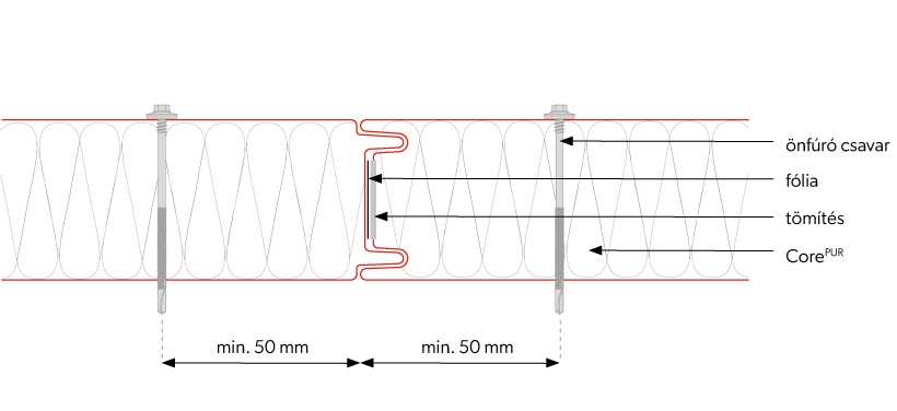 | PUR panel vastagsága [mm] | 40 | 60 | 80 | 100 | 120 |