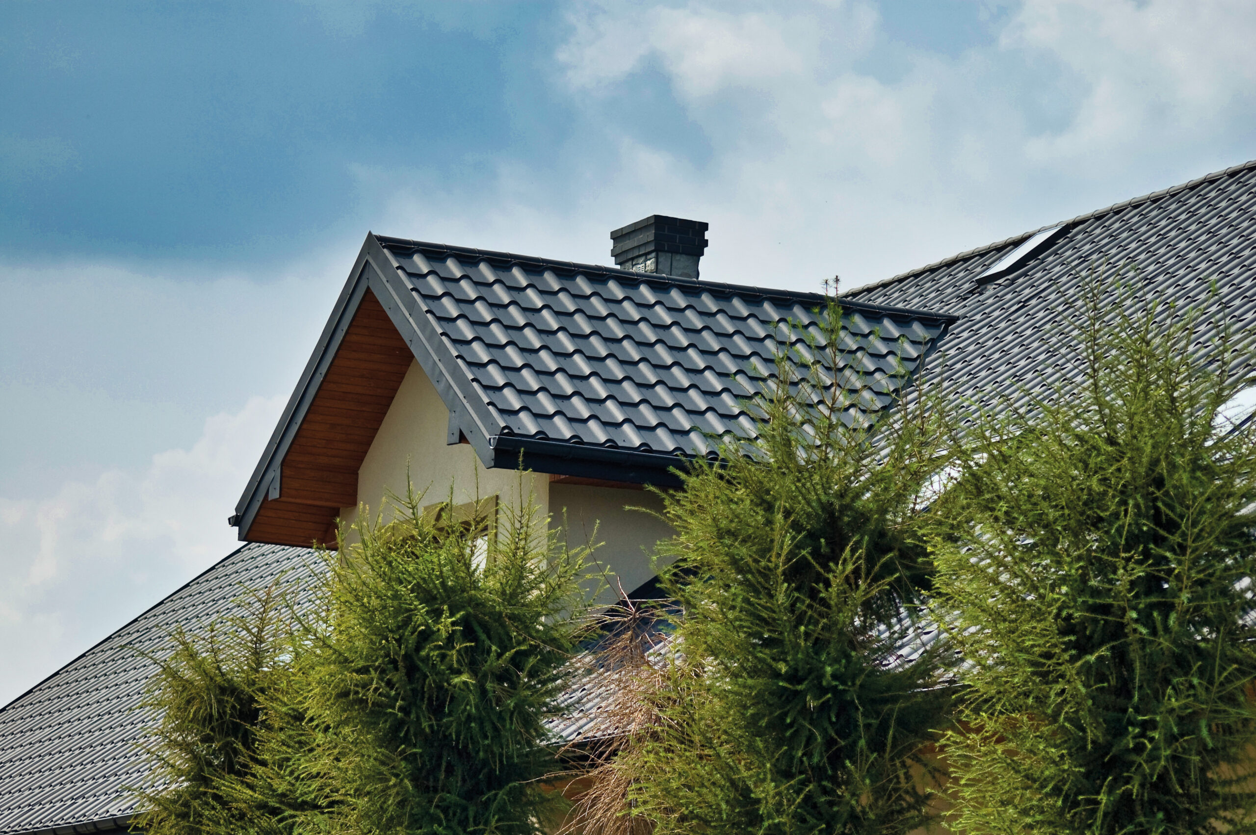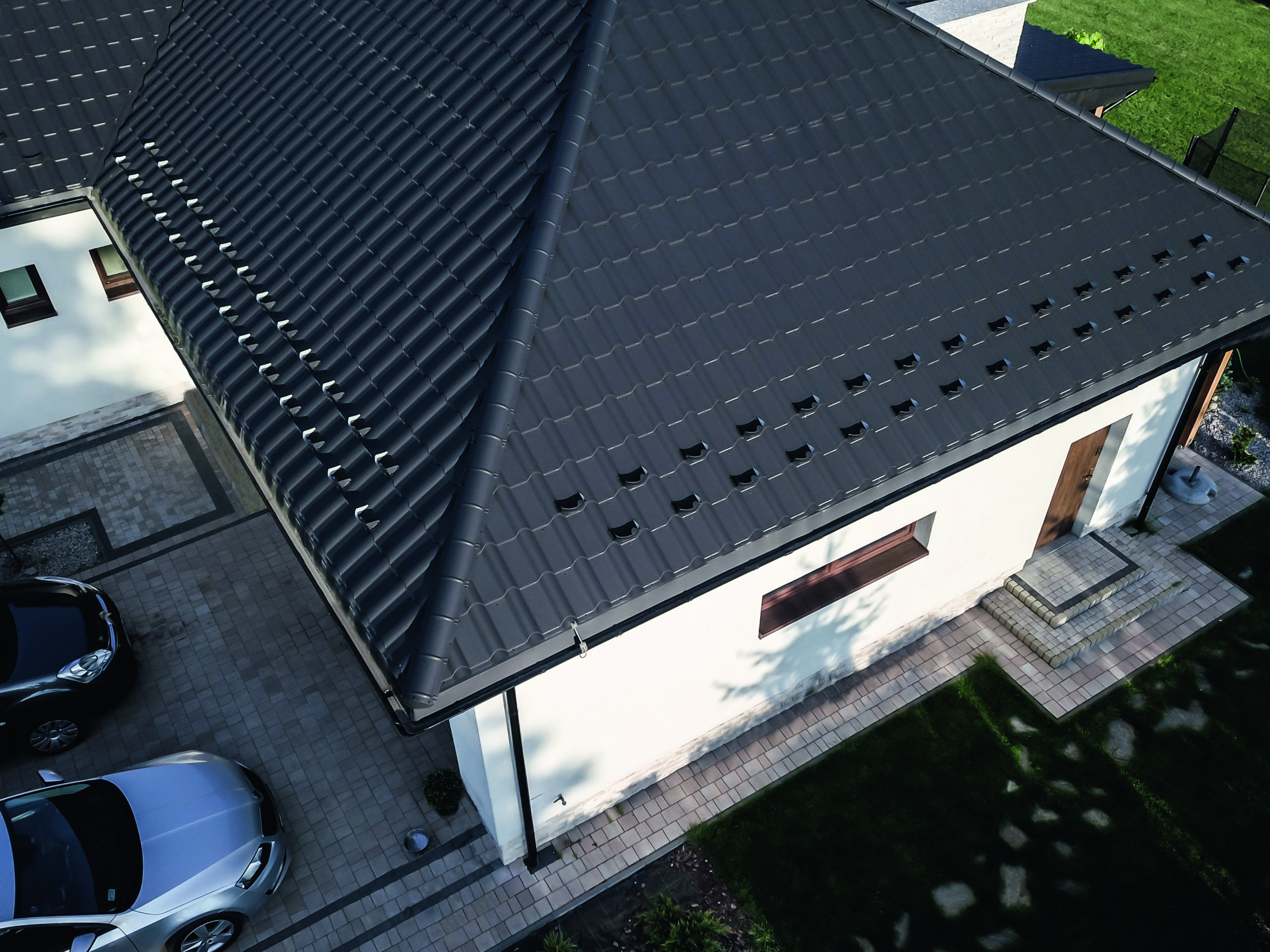 Skardinių čerpių konstrukcija leidžia jas tvirtinti bet kuria kryptimi (iš kairės arba iš dešinės).