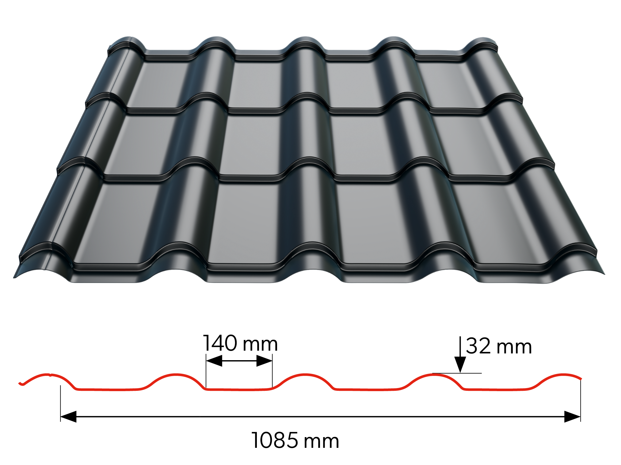 RETRO SERIES serijos lakštų užlaidas – duoklė stogo dangų istorijai, kai lakštas pjaunamas apie 2 cm žemiau profilio.