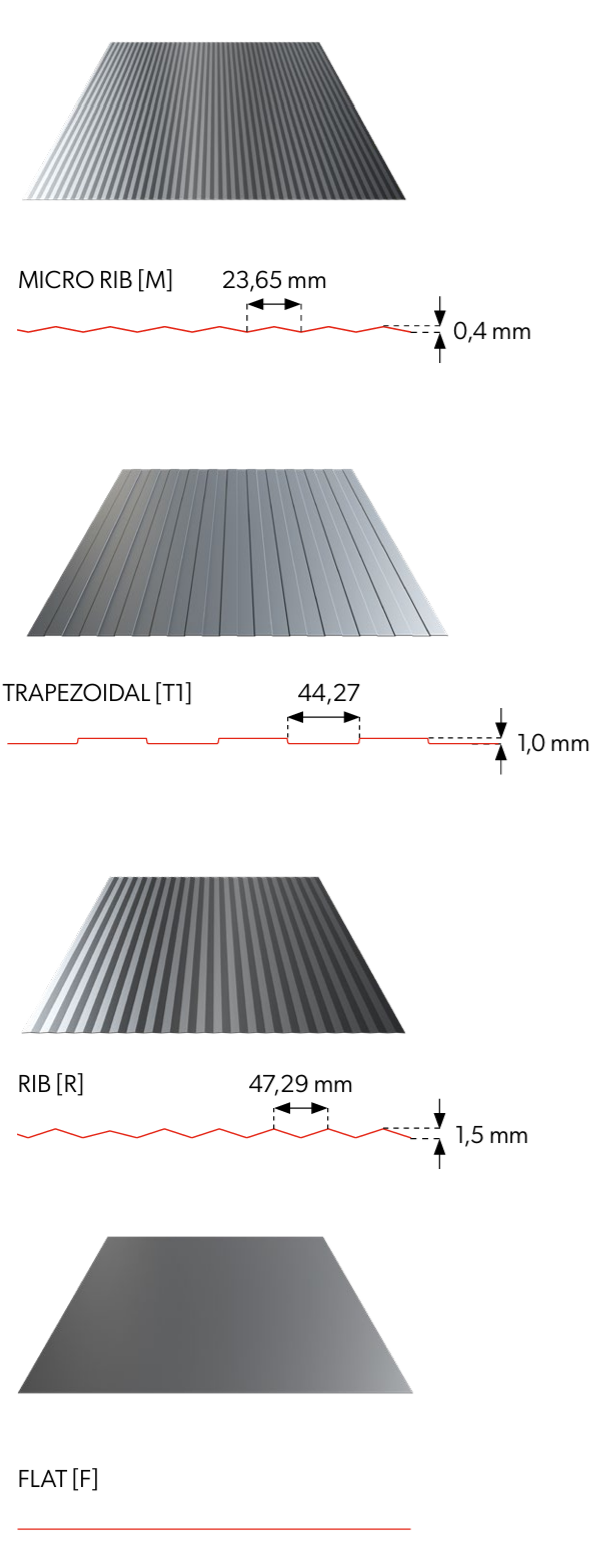 Poliester Interior [INT], Poliester Standard [RAL], HERCULIT [HC], MULTILAYER 40 [MLT] |
