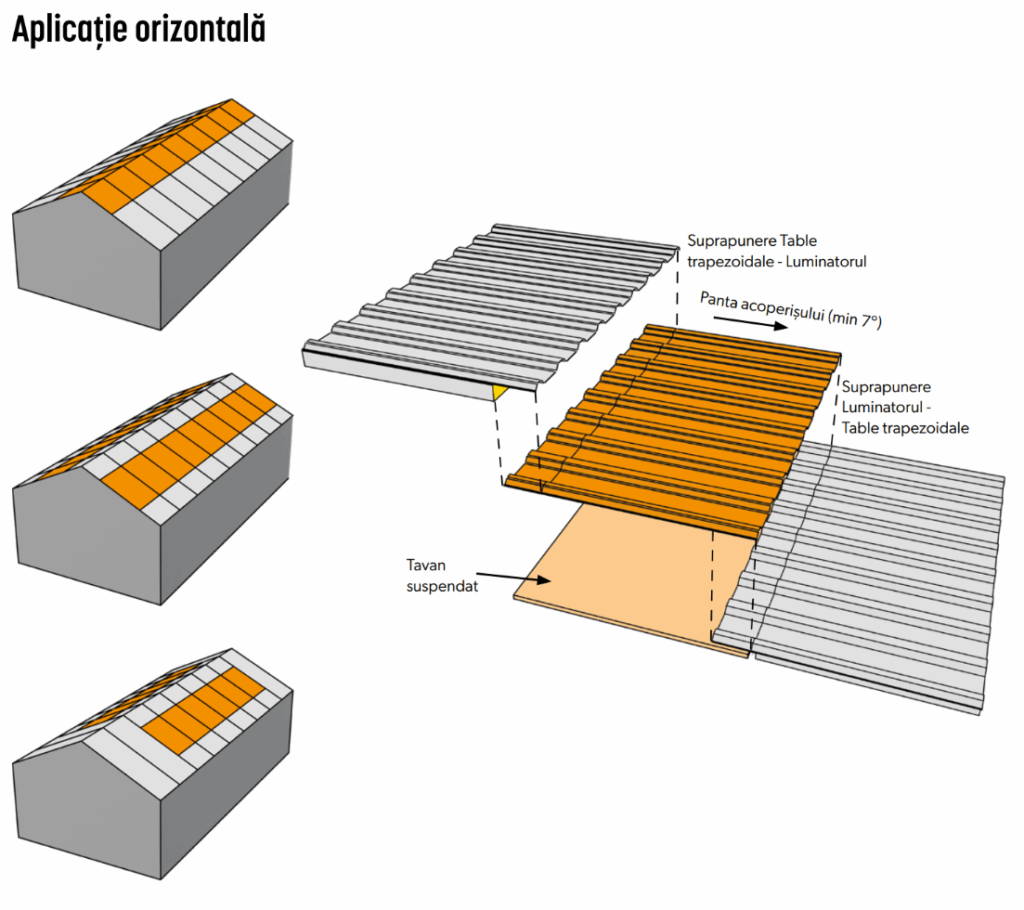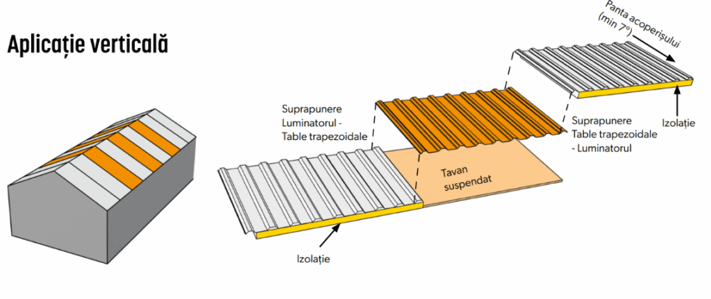 ridicată a luminii naturale cu o structură durabilă. Asigură iluminarea eficientă a halelor și a spațiilor mai mici. Se caracterizează