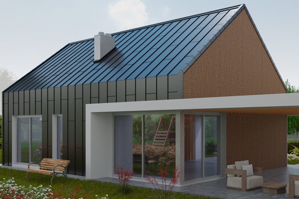 Najnowszą pozycją w asortymencie marki BP2 jest modułowy panel blaszany FIT. To wyjątkowy produkt, łączący tradycję z nowoczesnością. Wyglądem nawiązuje do klasycznych dachów sprzed wielu lat, stanowiąc ukłon w stronę historii. Jego arkusze łączą się wertykalnie na przemian, gwarantując zachwycający efekt wizualny. Dodatkowo zastosowana technologia zamka zatrzaskowego umożliwia szybki montaż, a także sprawia, że na powierzchni dachu tworzy się struktura przypominająca tradycyjnie felcowany rąbek.
